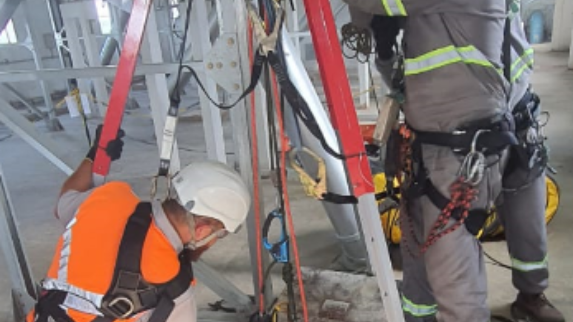 Profissionais treinados e certificados para trabalhos técnicos em altura e espaços confinados.